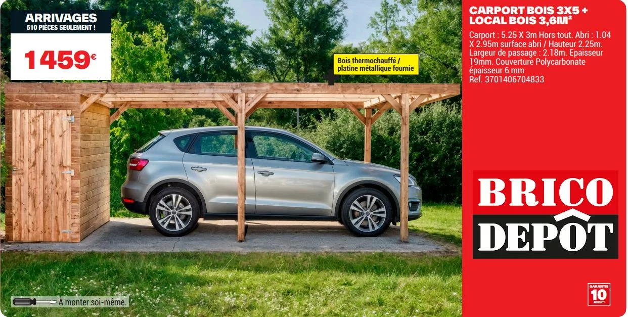 Vous recherchez une solution efficace pour protéger votre véhicule tout en optimisant votre espace extérieur ? Le nouveau carport Brico Dépôt proposé dans le catalogue des arrivages du 20 mars se démarque par sa polyvalence. En plus d’abriter votre voiture, il intègre un espace dédié au rangement du bois de chauffage, un véritable atout pour les foyers équipés d’un poêle ou d’une cheminée.