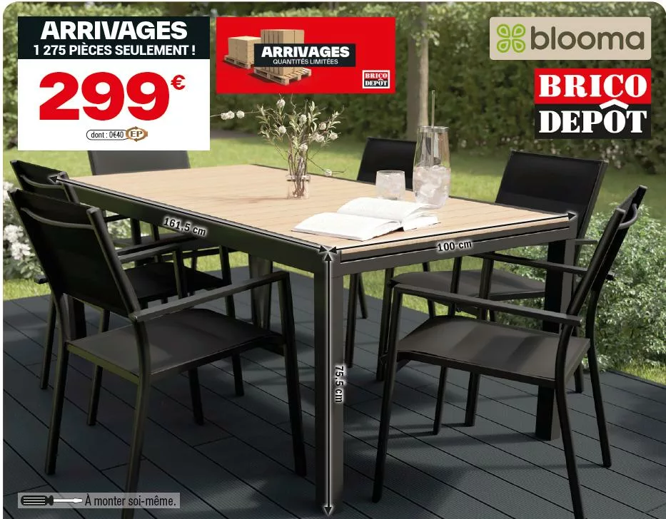 Le nouveau catalogue Brico Dépôt des arrivages du 27 mars 2026 vous réserve une belle surprise pour l’été : un ensemble complet salon de jardin comprenant une grande table, des chaises et un magnifique parasol !
